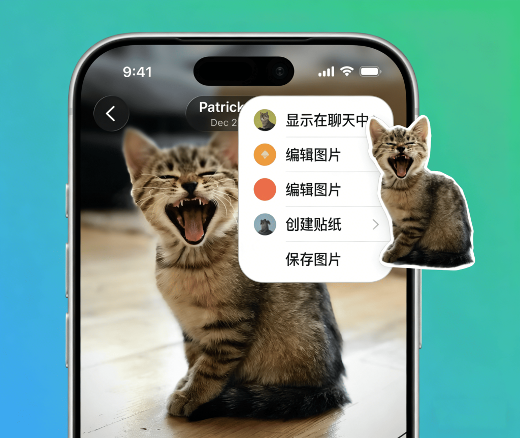 在媒体查看器中打开照片后,现在可以一键转为贴纸。